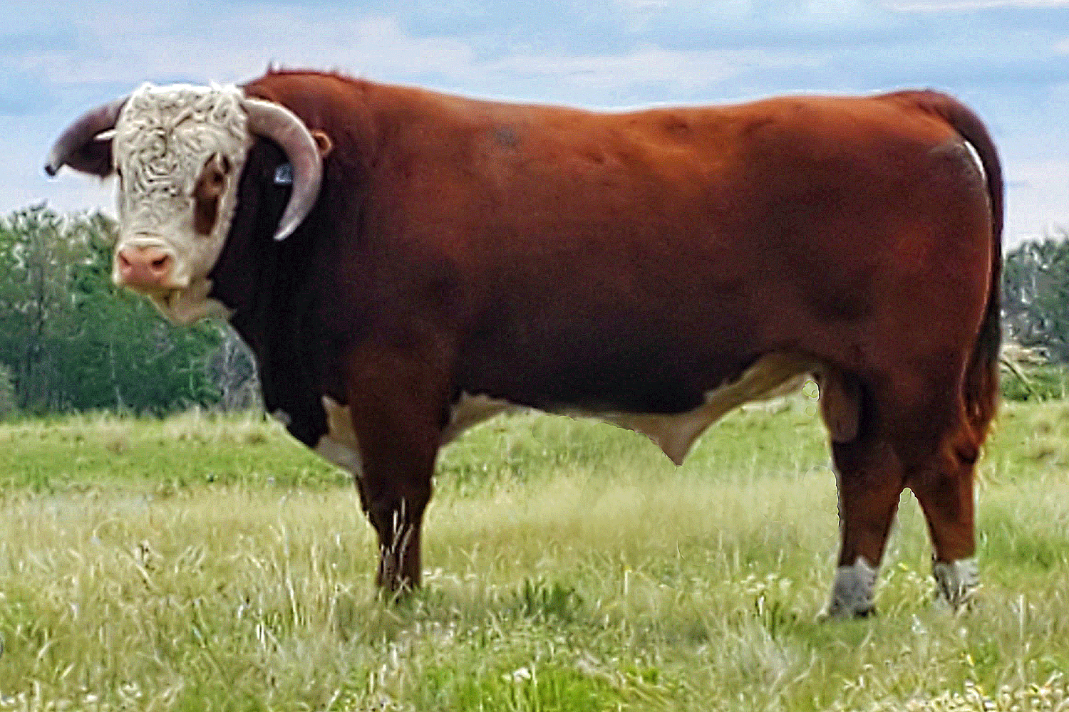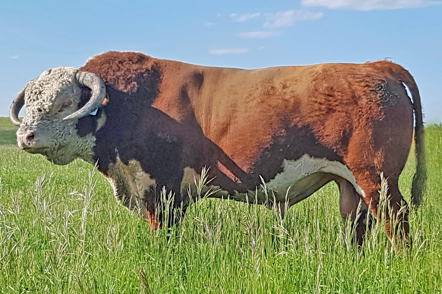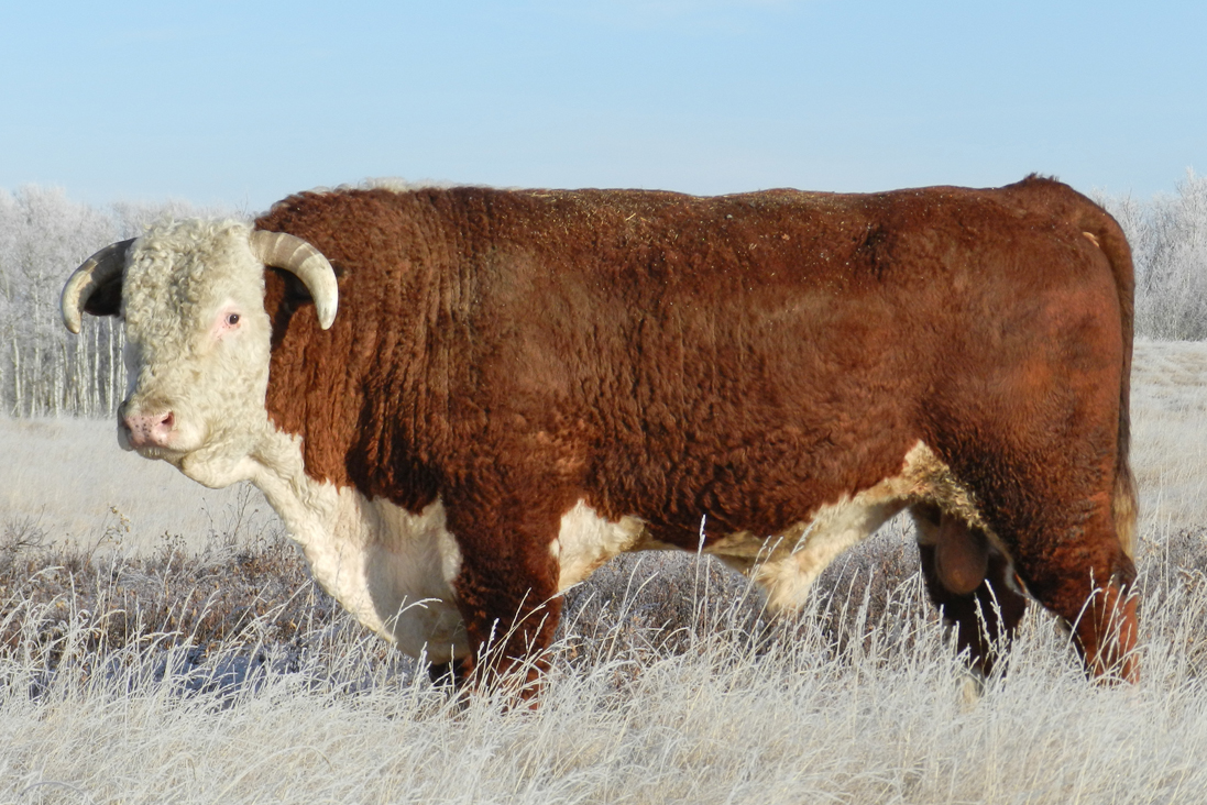 506C is a long, thick, free moving bull purchased from Wild Bear & McKenzie Herefords at the 2017 Calgary Bull Sale. He produces good milking feminine daughters.
